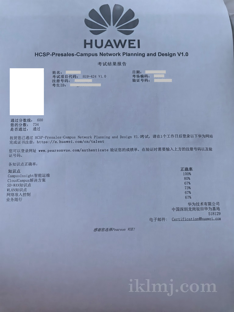 工作需要,顺利通过HCSP-Presales-Campus Network Planning and Design v1.0 (H19-424)科目考试。